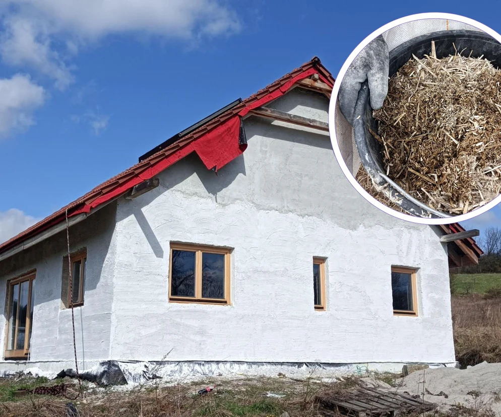 - Gęstość betonu konopnego to ok. 15% gęstości betonu tradycyjnego, co przekłada się na to, że jest on około siedmiokrotnie lżejszy. Nie pełni funkcji nośnej, dlatego w przypadku zastosowania tej technologii trzeba postawić drewnianą konstrukcję szkieletową i dopiero w drugiej kolejności należy wypełniać ją betonem konopnym. Wapno użyte w mieszance z czasem się karbonatyzuje (wchodzi w reakcję z CO₂ z powietrza), co wzmacnia strukturę i sprawia, że beton konopny zyskuje na twardości i z czasem staje się skałą - wyjaśnia Krzysztof.