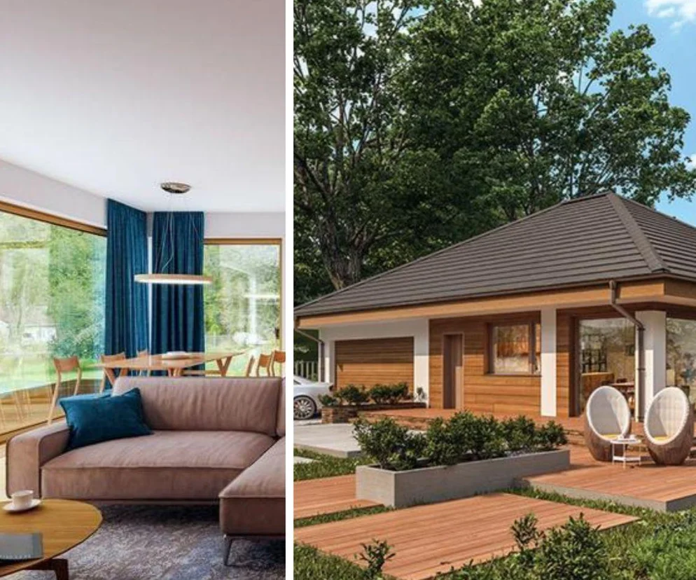Projekt domu Czterolistna koniczyna – wariant XVIII. Jasny salon z jadalnią