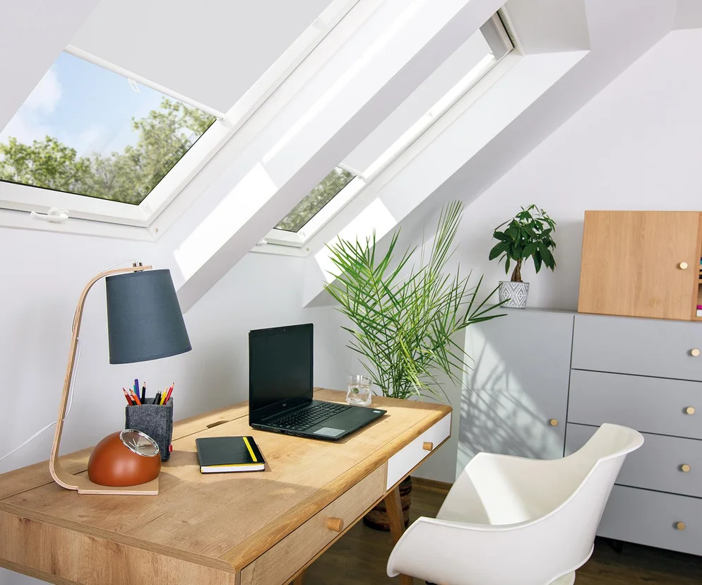 Okna obrotowe to uniwersalne rozwiązanie pasujące do większości dachów. Są dostępne w wielu rozmiarach, więc można je dopasować do rozstawu krokwi, co ułatwia ich instalację. Wielkość okien obrotowych można dopasować też do powierzchni pomieszczeń na poddaszu. Ich konstrukcja sprawia, że są łatwe w montażu i obsłudze. Można je swobodnie otwierać niezależnie od wysokości montażu – ręcznie, za pomocą drążka albo pilota.