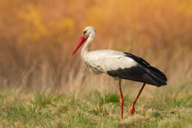 Bocian na łące
