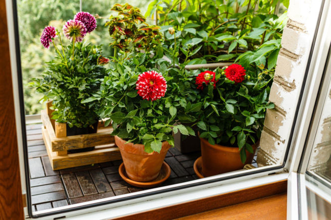 Dalie w doniczkach na balkonie