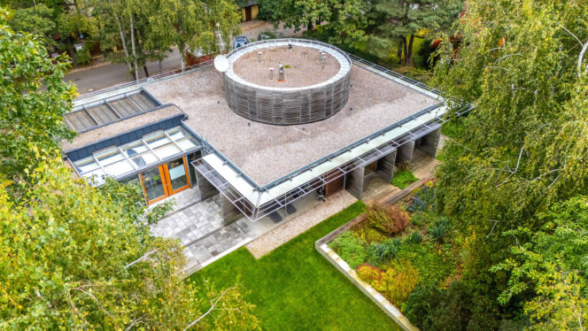 Dom przyszłości zaskakiwał nietypową bryłą z cylindrem na dachu