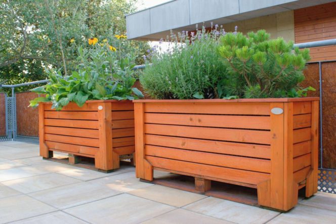 Rośliny w drewnianych skrzyniach