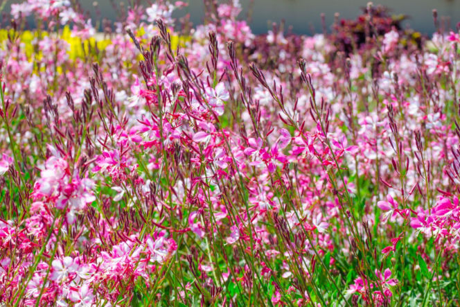 Gaura atrakcyjnie wygląda na rabacie w połączeniu z niższymi roślinami