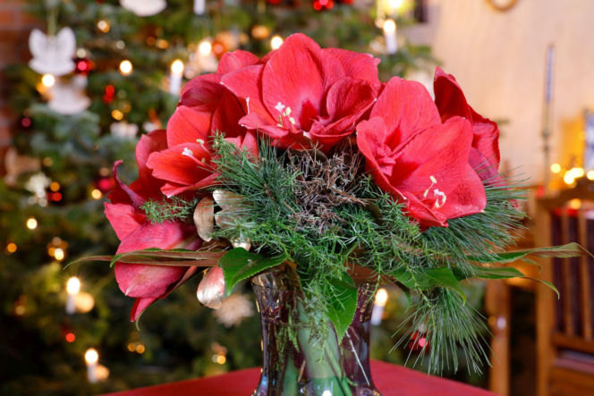 Cięte amarylisy będą piękną ozdobą stołu na Boże Narodzenie