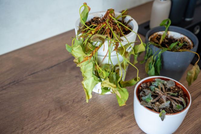 Przesuszone rośliny doniczkowe