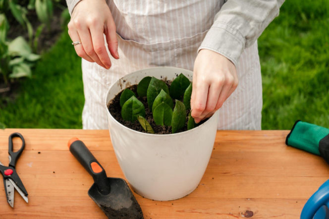 Przygotowujemy liść zamiokulkasa, doniczki i podłoże