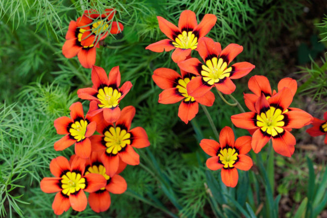 Sparaksis może dorastać do około 40 cm wysokości, tworząc zielone, mieczowate, długie, wąskie, sztywne liście i rozwijając latem wzniesiony, sztywny, nagi pęd kwiatostanowy, zakończony luźnym, kłosowym kwiatostanem, złożonym z kilku (1-9) dużych, barwnych kwiatów
