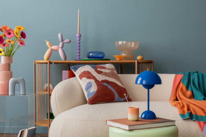 AKCENTY BARWNE …Ożywiają zabudowę z wodoodpornej sklejki – wracają tu kolory, które widzieliśmy już w innych pomieszczeniach. Efektowne dodatki nie kosztowały fortuny. Katarzyna wyszukała je w sklepach o rozsądnym poziomie cen. GDZIE KUPIĆ: lustro – IKEA; kinkiety– Interno