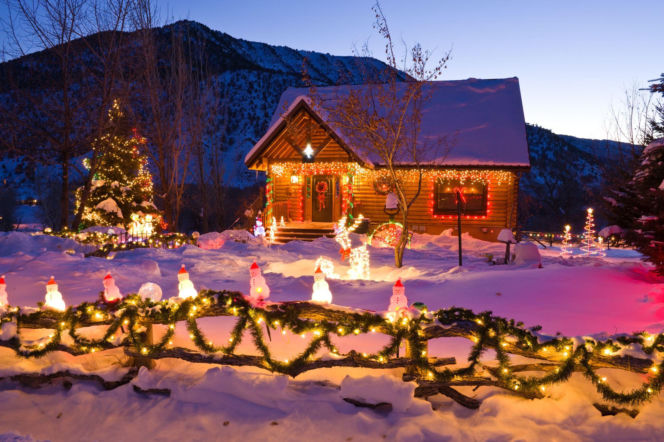 Świątecznie ozdobiony ogród i dom w pełnej krasie