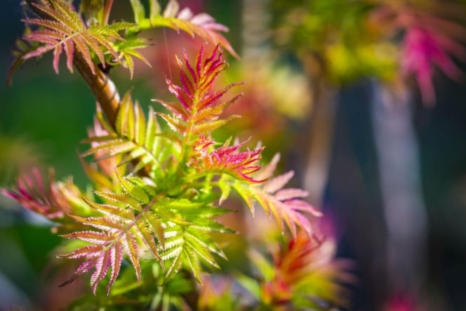 Młode liście tawliny jarzębolistnej pojawiają się na krzewie już w marcu