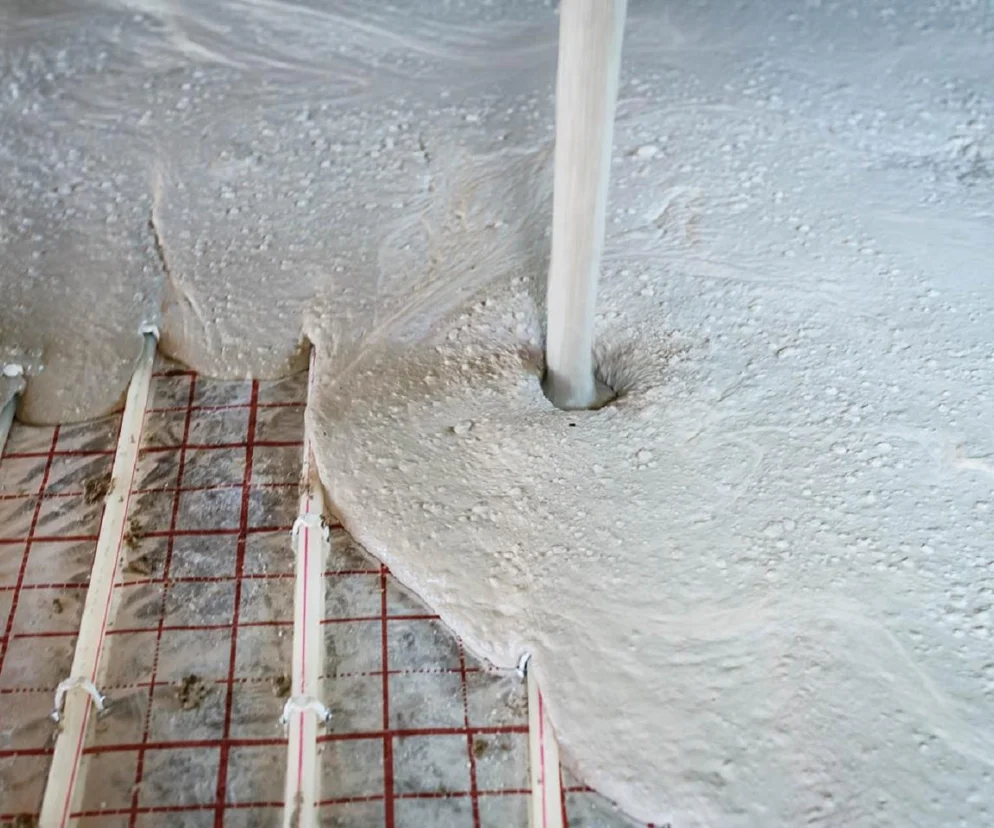 Upłynnioną masą anhydrytową łatwo dokładnie wypełnić przestrzenie wokół instalacji. Poza tym cechuje ją niska porowatość, wynosząca około 8% (cementowy podkład podłogowy 12-15%).