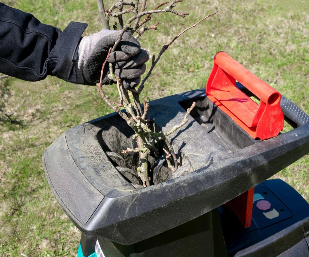 Po cięciu drzew i krzewów pozostaje znaczna ilość odpadów organicznych. Drobne gałęzie można częściowo wykorzystać w kompostowniku (w niewielkiej ilości), jako domki dla jeży, motyli czy hotele dla owadów. Wciąż jednak pozostaje ogromna ilość materiału do utylizacji. Zamiast się ich pozbywać, można przerobić je na zrębki i wykorzystać jako ściółkę dla roślin.