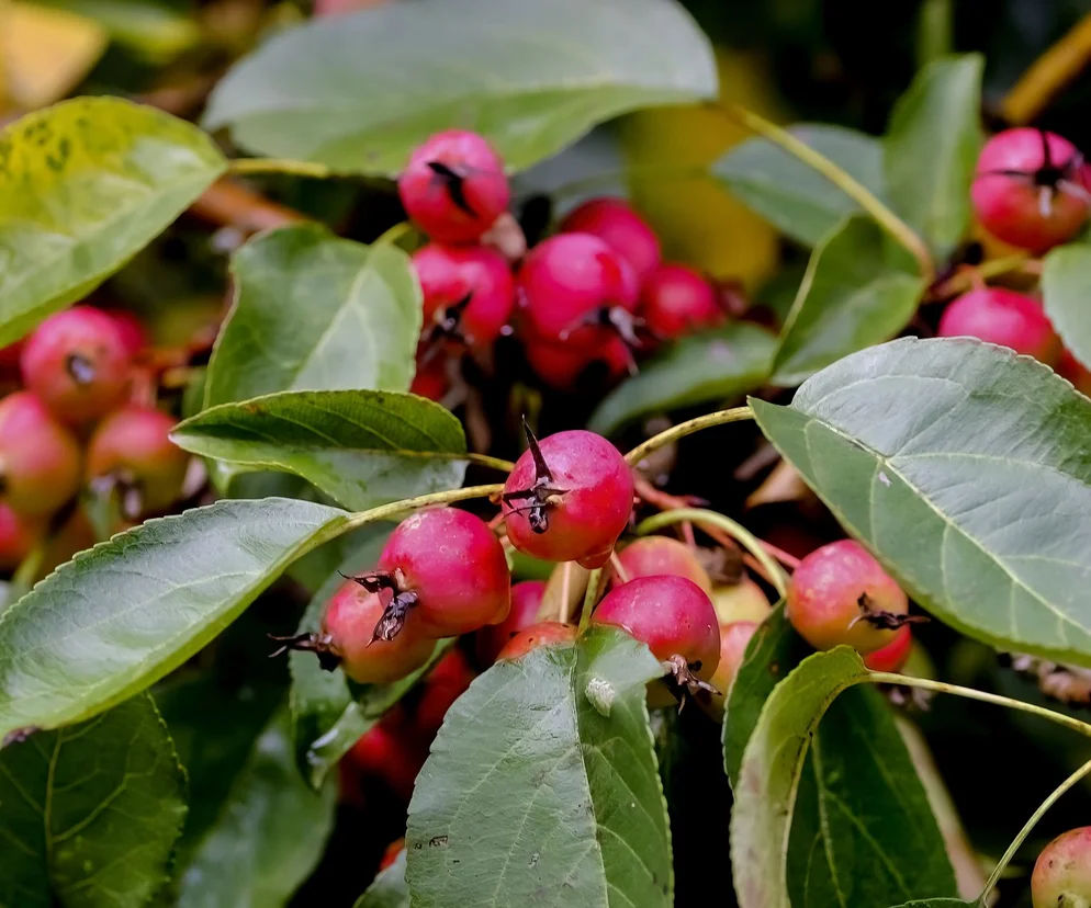 - - jabłoń kwiecista Malus baccata - zależnie od odmiany kwiaty są białe lub różowe, a owoce żółte lub czerwone;