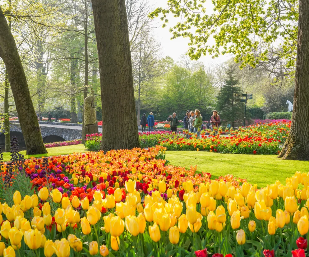 Ogrody Keukenhof to jeden z największych ogrodów kwiatowych na świecie. Jest między Amsterdamem i Hagą, blisko miejscowości Lisse Keukenhof. To też jedna z największych wiosennych atrakcji Holandii. To tu kwitną słynne i bardzo instagramable pola tulipanów w bajecznych kolorach. Kwiatowe dywany, magiczne zakątki, wystawy, które zmieniają się co tydzień i pawilony tematyczne - to sprawia, że co rok, wiosną, turyści nadciągają tu tłumnie. Oficjalnie Keukenhof to międzynarodowa wystawa holenderskiego sektora florystycznego, park zajmuje 32 hektary, a przeciętnie odwiedzający spędzają tu 3 godziny, oglądając bajeczne tulipany.