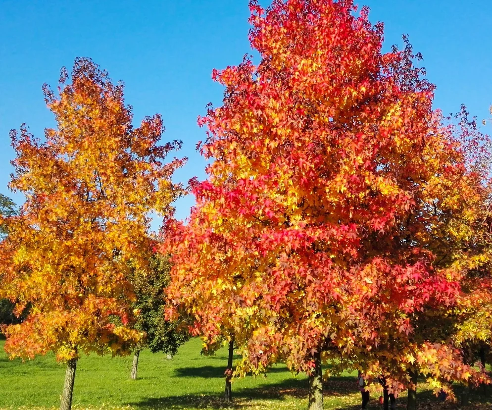 - Ambrowiec amerykański – w polskich warunkach drzewo zwykle nie przekracza 25 m wysokości. Wytwarza atrakcyjne dłoniaste, ciemnozielone, błyszczące liście. Ich walory dopiero uwypuklają się w okresie jesiennym. Blaszki liściowe przebarwiają się intensywnie w kolorach: czerwonym, purpurowofioletowym i złotym. Ambrowca powinno się uprawiać w ogrodzie w miejscu słonecznym, zacisznym, osłoniętym od wiatru. Lubi żyzne, przepuszczalne gleby.