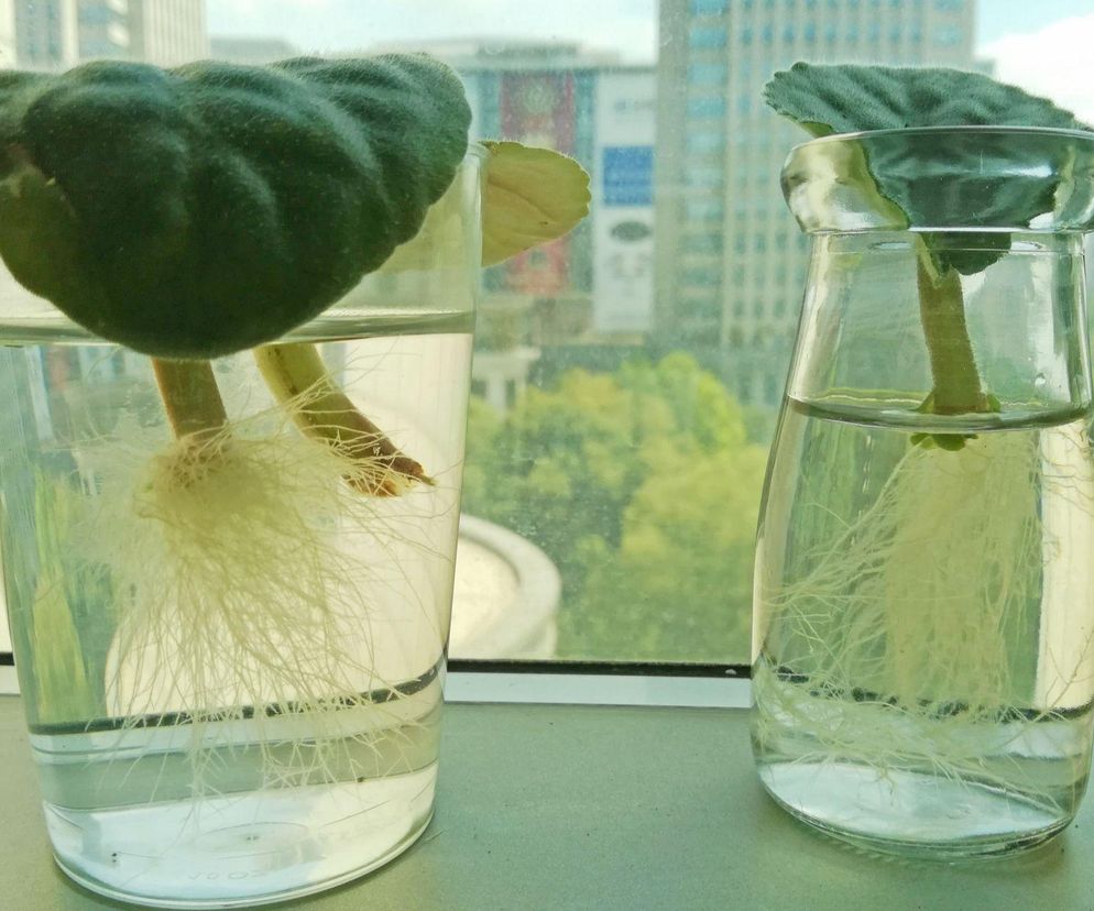 Odcięte liście można też włożyć do naczynia z wodą, a po ukorzenieniu posadzić do doniczek.
