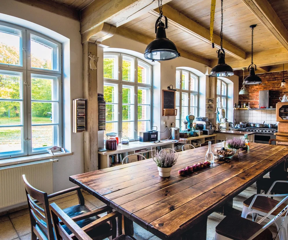 Do urządzania wnętrz podeszli jak do gotowania – przyprawiali z umiarem, za to w odpowiednich proporcjach. Może dlatego wnętrza emanują spokojem. Wybierali naturalne materiały z okolicy – kamień, którego polodowcowe wzgórza nie skąpiły, drewno. Wyszukiwali stare drewniane meble, przedmioty i zdjęcia związane z historią domu i okolicy. Starali się przy wszystkich pracach korzystać z lokalnych fachowców. Zasada fair trade towarzyszy im do dziś – to od sąsiadów kupują mleko, jajka i inne produkty, których sami nie mają.