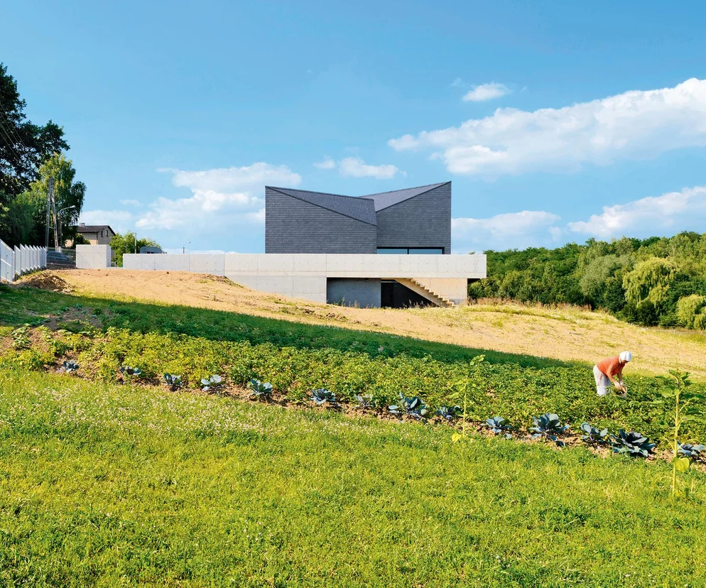 Miną lata, zanim ogród osiągnie wymarzony przez gospodarzy wygląd. Za to dom jest już gotowy. Właściciele nie spieszą się z urządzaniem wolnych powierzchni. Dzięki nim wnętrze wydaje się jeszcze bardziej przestrzenne. Doceniają je nawet ci krewni i znajomi, którym bryła budynku wciąż wydaje się zbyt ekscentryczna.
