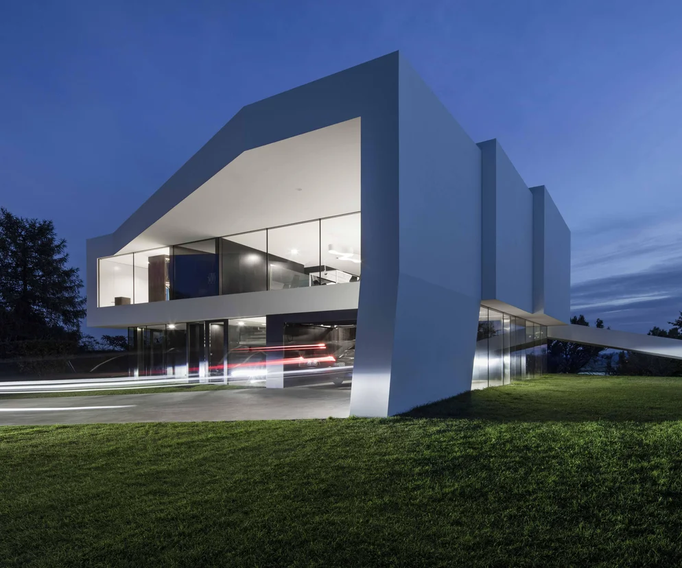 Kilka lat temu w rozmowie ze mną Robert Konieczny przyznał, że to jeden z jego ulubionych projektów. A jednak początek nie zapowiadał sukcesu. Przepiękna działka nad rzeką i wymagający inwestor, który chciał, by plan domu... był dokładnie taki sam jak mieszkanie, w którym mieszkał. Bo tam było mu wygodnie. I to na środku działki. Efekt: dom niejako zbudowany ze wstęgi-drogi. Droga oplata budynek. - Takie rozwiązanie zdarza się raz na 20 lat - mówi Konieczny.
