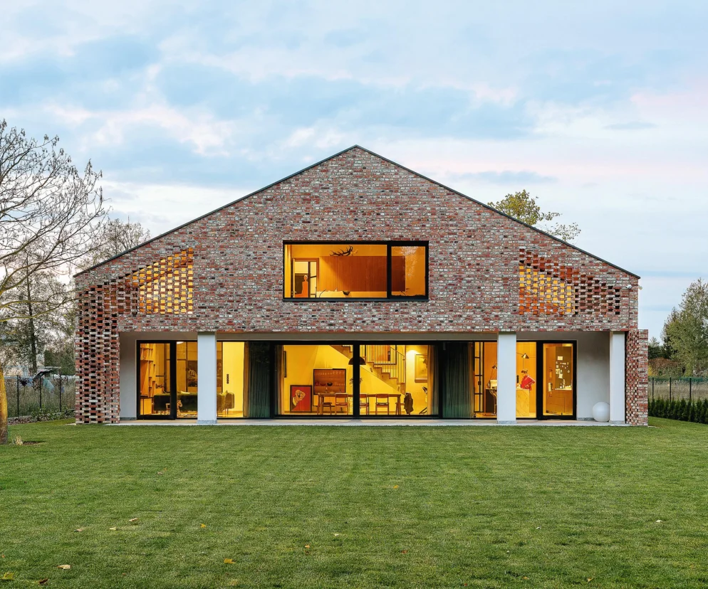 Sercem projektu są historyczne cegły, które przeszły fascynującą podróż. Pierwotnie służyły do budowy pałacyku pod Warszawą, a po jego rozbiórce wykorzystano je do wzniesienia innego domu, który stał przez kolejnych 70 lat. Po kolejnej rozbiórce cegły trafiły w ręce inwestorów spod Konstancina. Były one cięte na plastry i posłużyły zarówno do wznoszenia konstrukcyjnych ścian wewnętrznych, jak i jako element ozdobny.