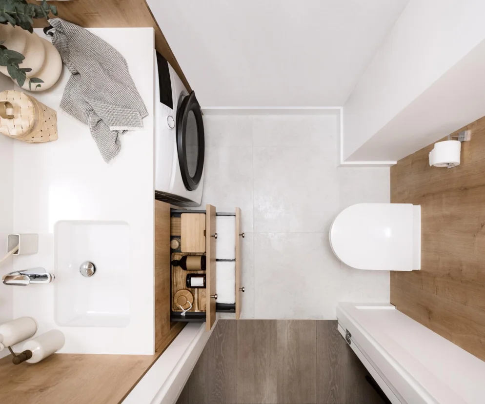 Szukając w niewielkiej łazience miejsca na kabinę prysznicową, warto rozważyć zmianę całej aranżacji i wybór rozwiązań specjalnie przewidzianych do pomieszczeń o minimalnym metrażu, takich jak mini umywalka, pralka o głębokości zabudowy jedynie 40 cm, a nie standardowe 60 cm.