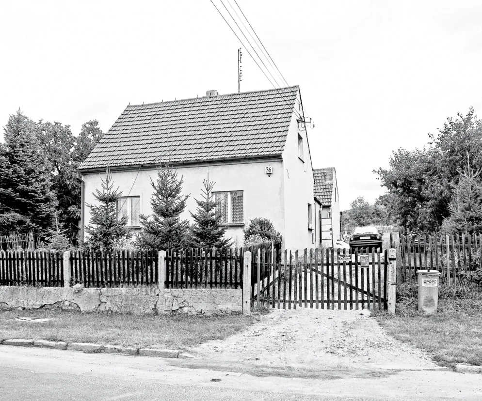 To było poniemieckie niewielkie gospodarstwo składające się z kilku połączonych budynków. Od strony drogi znajdował się niewielki dom, w głębi podwórza stodoła o takich samych rozmiarach i podobnej bryle. Łączył je ciąg parterowych zabudowań gospodarczych z oborą i gołębnikiem.