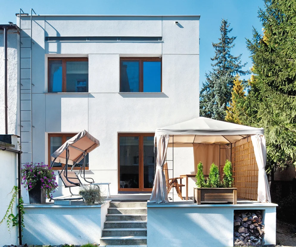 Druga kwestia to rodzaj zastosowanego materiału ociepleniowego. Od wartości jego współczynnika λ zależy niezbędna grubość warstwy termoizolacyjnej. Im niższa lambda, tym cieńsza może być izolacja. Musimy też zdawać sobie sprawę, że dokładanie izolacji generuje pewne niedogodności. Jeśli na przykład nie zamierzamy wymieniać okien, mocując nowe bliżej płaszczyzny fasady, wtedy po dociepleniu przeszklenia znajdą się w „tunelach” i mniej słońca dotrze do domu. Im więc lepsze płyty ociepleniowe zamówimy, lepsze – czyli o jak najniższym współczynniku λ – tym warstwa izolacji mniej się zwiększy i tym samym nie ograniczymy dostępu światła dziennego do pomieszczeń.