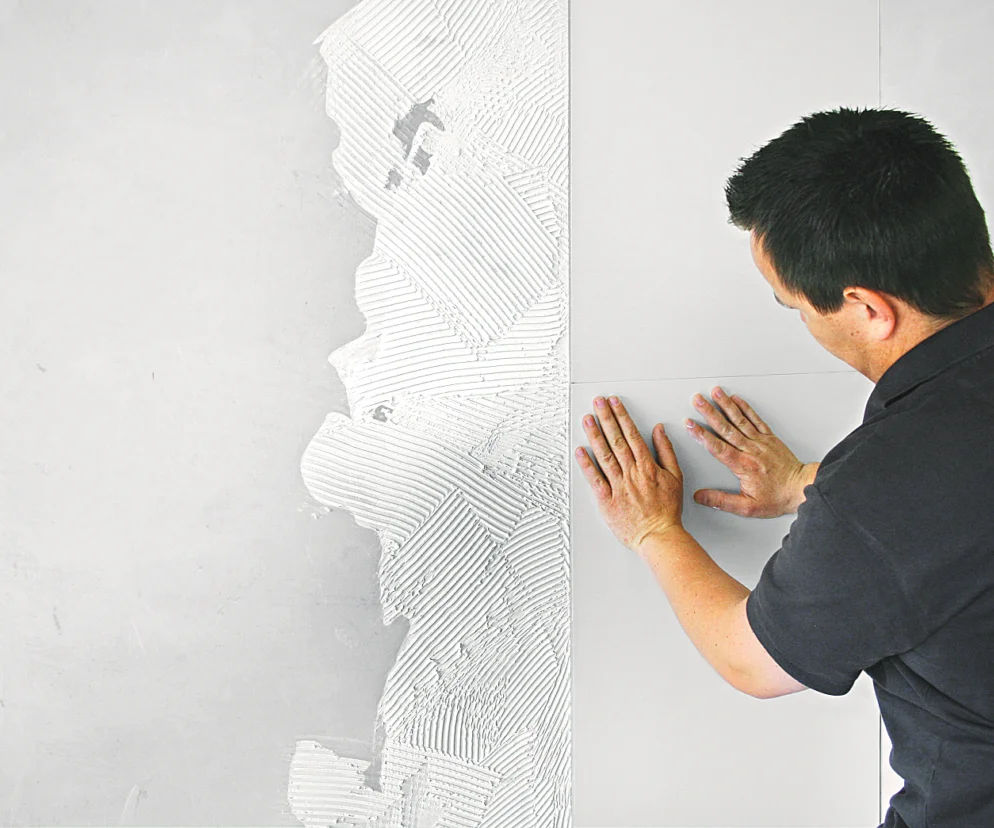 Płyty silikatowe, wapienno-krzemianowe, perlitowe mocuje się do ścian klejem tak, żeby nie było pod spodem pustek powietrznych. Z tego względu ogromnie ważne jest staranne przygotowanie podłoża.