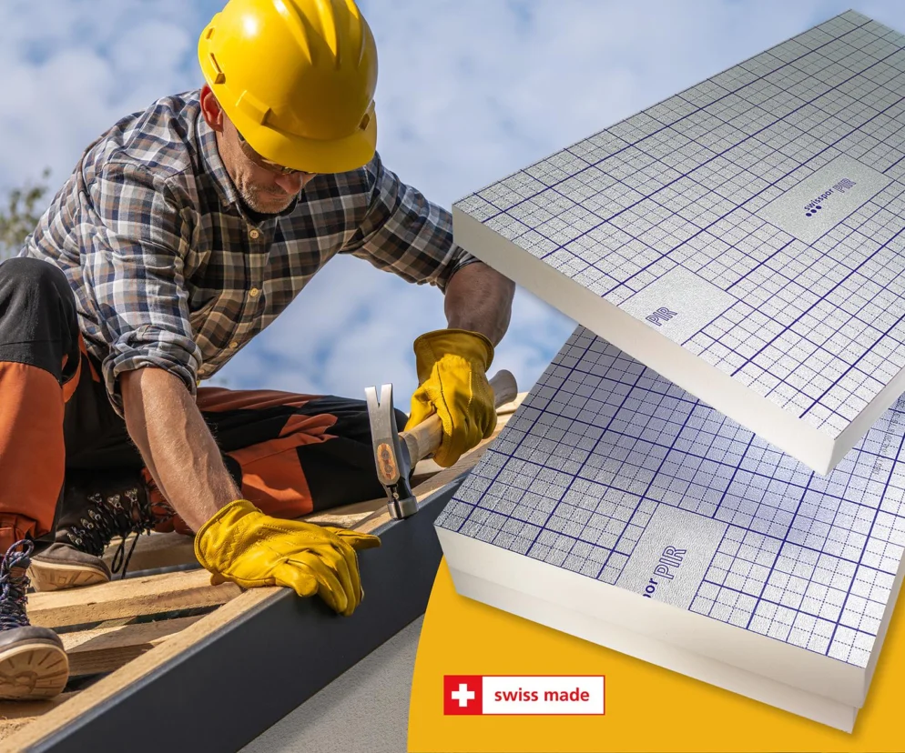 Współczesne budownictwo ceni materiały izolacyjne, które są kompatybilne w szerokim zakresie z innymi produktami, zwłaszcza hydroizolacyjnymi. Istotny jest też prosty oraz szybki montaż, w dodatku w taki sposób, aby eliminować na tym etapie błędy wykonawcze. Do materiałów tych można zaliczyć płyty swissporPIR. Produkowane są w grubościach od 20 do 300 mm o wymiarach 1200 x 600 mm oraz 2400 x 1200 mm. Mogą mieć krawędzie proste, frezowane lub pióro‑wpust, co ułatwia ich dopasowanie do ocieplanej przegrody oraz pozwala zapobiegać powstawaniu mostków cieplnych. Układa się je w jednej lub w dwóch warstwach (na tzw. mijankę).
