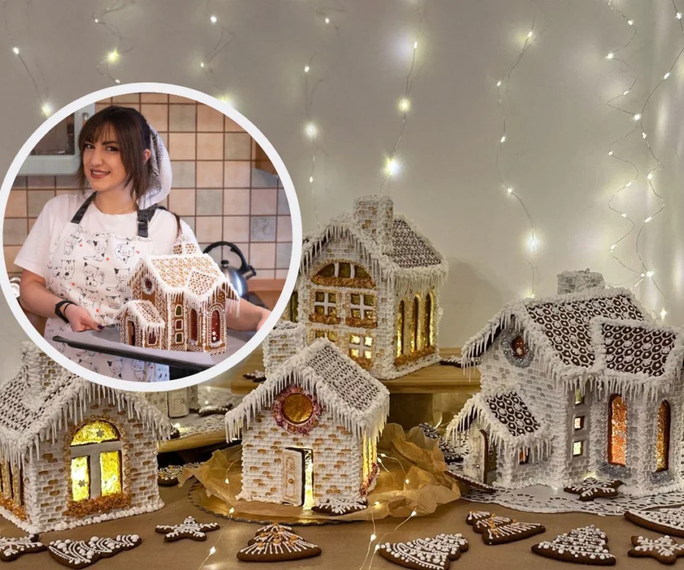 Kateryna żartuje, że grudzień to jedyny czas w roku, kiedy „pracuje w zawodzie” – ukończyła budownictwo i to właśnie w grudniu wykorzystuje zawodowe umiejętności w kuchni. Jej świąteczna pasja to połączenie trzech elementów: miłości do pieczenia, tworzenia rzeczy pięknych własnymi rękami oraz przekonania, że piernikowe domki to nie tylko doskonały prezent dla bliskich, ale także wyjątkowa ozdoba, która wprowadza magię we wnętrzu domu.