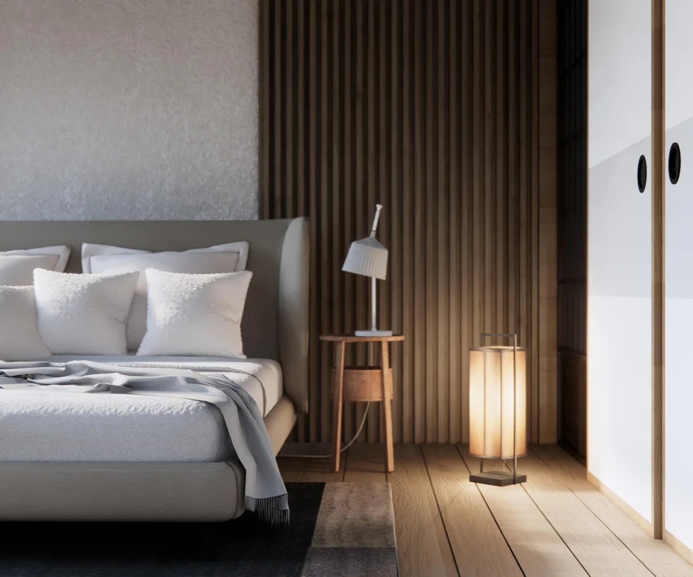 Lamele sprawdzają się w każdym pomieszczeniu, dodając elegancji i funkcjonalności. W salonie tworzą akcentową ścianę za sofą lub telewizorem, optycznie dzieląc przestrzeń bez ciężkich ścian działowych. W sypialni nadają przytulności, montowane poziomo na suficie dla efektu „pływającego" sufitu.