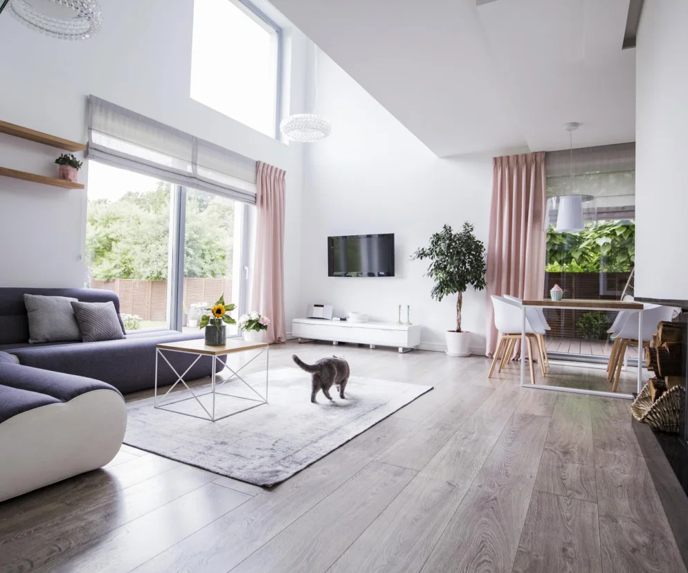 Muszą być przede wszystkim odporne na ścieranie. Psy i koty wnoszą na łapach piasek, który rozcierany pod stopami i łapami działa jak tarka. Dlatego panele podłogowe powinny mieć najwyższą klasę ścieralności – AC5. Najlepiej wybrać te wykończone matowym olejem, ponieważ drobne zadrapania nie będą się wtedy rzucały w oczy. Taką powłokę można też łatwo odświeżyć domowymi sposobami.