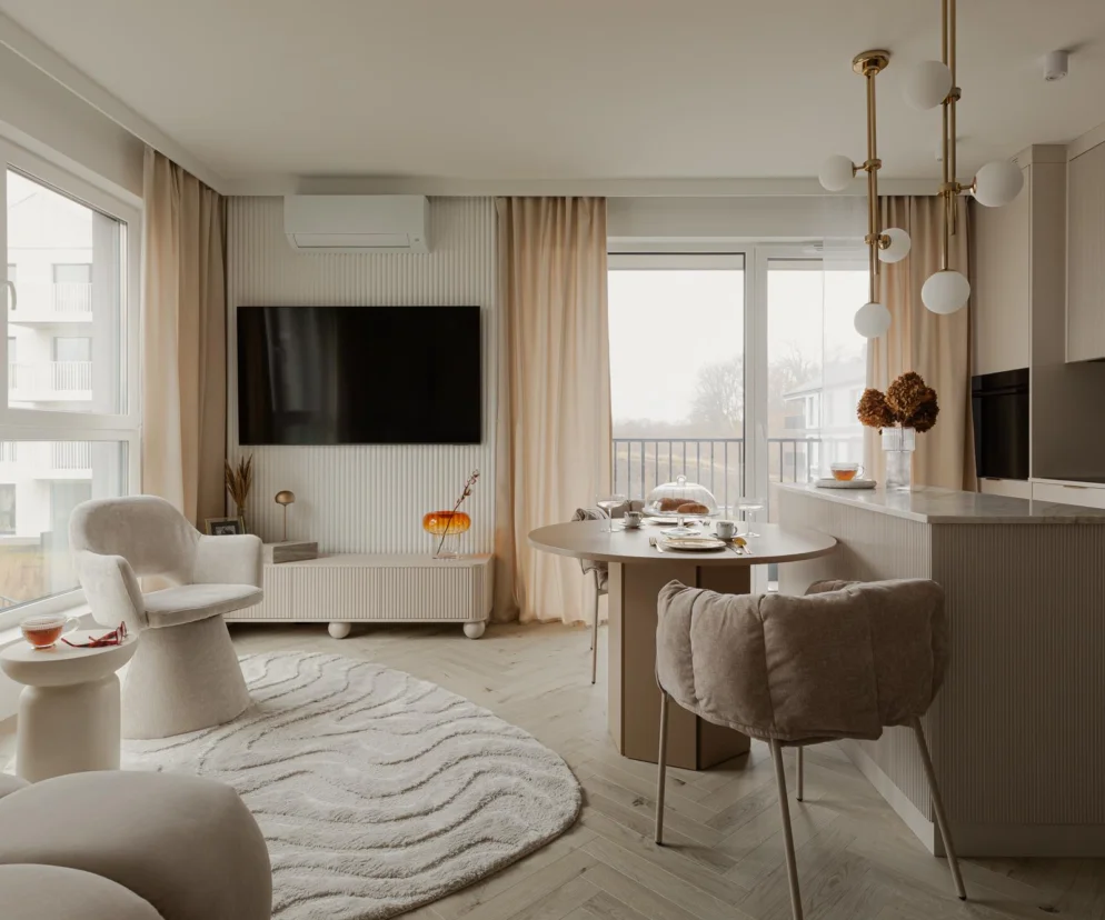 Monochromatyczna paleta i miękkie linie. Wnętrze, które nie przytłacza